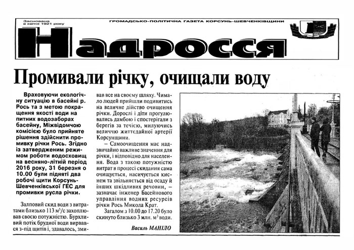 Громадсько-політична газета Корсунь-Шевченківщини "Надросся": "Промивали річку, очищали воду"